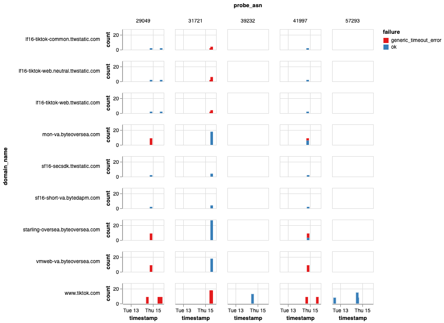 By focusing our attention on the Ucom network (AS44395), we can see that not all TikTok endpoints appear to be blocked.