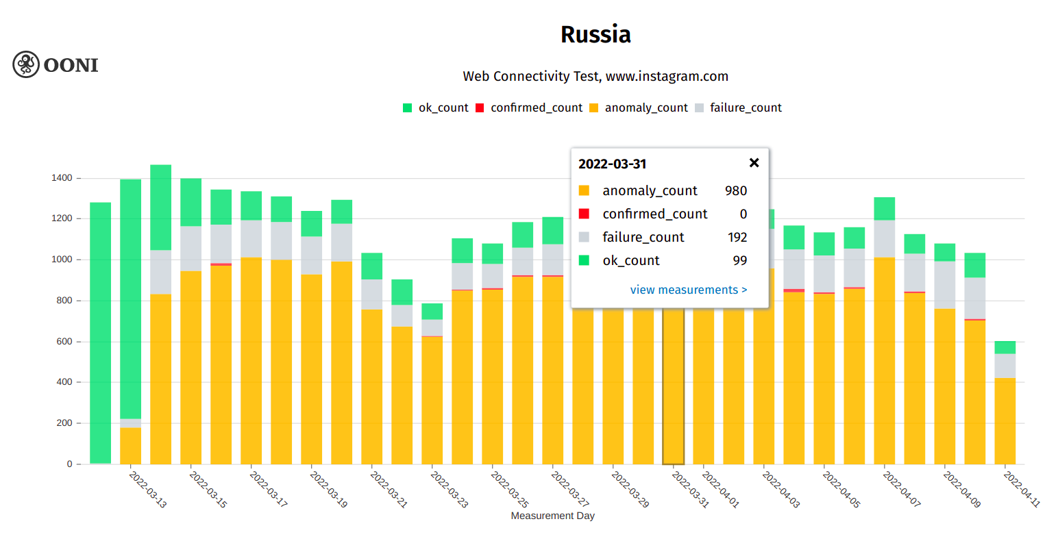 For example, if you would like to check the potential blocking of Instagram in Russia through the MAT: